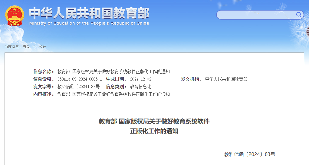 教育部 国家版权局关于做好教育系统软件正版化工作的通知